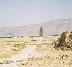 Tour qui marque le centre de la ville circulaire de Gūr (en)