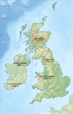 - le Carrauntuohil (1 038 m), en république d'Irlande ;