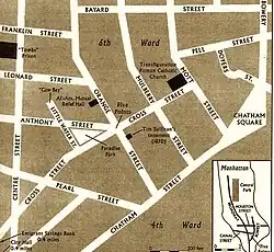 - ↑ (en) « urbanography - Where "The Gangs" Lived--New York's Five Points District, by Gregory J. Christiano, Page 4 », sur www.urbanography.com (consulté le )