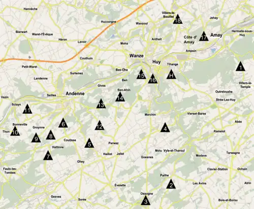 | 17 | Côte d'Amay | • | • | |||||||||||