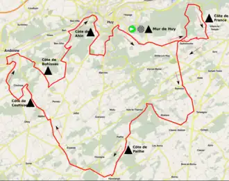 - ↑ (en) « 5th Fleche Wallonne - CDM, Overall map », sur cycling news (consulté le )