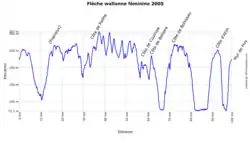 Au bout de quinze kilomètre, Béatrice Thomas initie la première échappée avec Natalie Bates. Elles ne sont pas prises en chasse par le peloton. À cinquante-cinq kilomètres de l'arrivée, Anke Wichmann, Sabrina Emmasi et Katia Longhin partent en poursuite et rejoignent les coureuses de tête. Le poids des kilomètres se faisant sentir, Emmasi et Bates lâchent leur compagnons d'échappée. Tatiana Shishkova attaque dans la côte de Bellaire afin de revenir sur les deux coureuses, mais la formation Flexpoint de Mirjam Melchers décide de mener la chasse. Au pied de la côte de Bohissau, le peloton est groupé. Karin Thürig et Adrie Visser passent ensuite à l'attaque mais sont reprises dans la côte de Ahin. Un groupe d'une trentaine d'athlètes se présente donc au pied du mur de Huy. Mirjam Melchers accélère la première. Dans la partie difficile, Oenone Wood et Nicole Cooke doublent la Néerlandaise et bataillent pour la victoire. La Galloise produit une dernière accélération décisive à deux cents mètres du but. Oenone Wood est deuxième et Judith Arndt troisième[4].