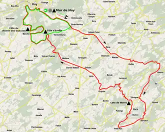 Le parcours est proche de celui de l'édition précédente, la Côte du chemin des Gueuses remplaçant la Côte de Cherave. Un grand circuit suivi d'un tour d'un petit circuit sont au programme. Sept côtes sont répertoriées pour cette édition :
