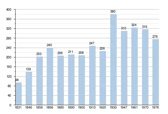 - Sources:INS, Rem:1831 jusqu'en 1970=recensements, 1976= nombre d'habitants au 31 décembre