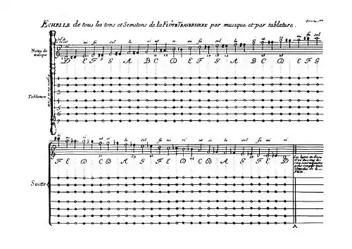 Principes de la flute traversiere, ou flute d'Allemagne, de la flute à bec ou flute douce et du haut-bois, divisez par traitez, Amsterdam,