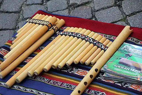 - La flûte de Pan essentiellement sous deux formes : le Siku (plutôt en Bolivie), et l’Antara (plutôt au Pérou), technologiquement sans doute la plus ancienne, et que l'on rencontre dans toute l'aire andine.