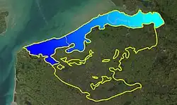 Il s'agit d'une zone située de 0 (quelques polders se situent même en dessous du niveau de la mer) à 5 m au-dessus du niveau de la mer appelée : Plaine maritime flamande (en néerlandais : Vlaamse kustvlakte), ou « plaine de Flandre maritime » ou « Flandre maritime » (en néerlandais : Maritiem-Vlaanderen), zone se poursuivant le long de l'Escaut occidental (en néerlandais : Scheldevlakte)[14],[15],[16],[17], jusqu'Anvers.