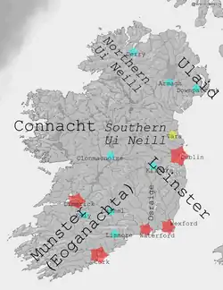 - ↑ Ó Cróinín, Early Medieval Ireland, pp. 233–238 ; Ó Corráin, Ireland, Wales, Man, the Hebrides, pp. 83–88, 93–94.