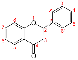 | Pinocembrine | OH | OH | (2R,3R)-3,5,7-Trihydroxy-2-phenyl-chroman-4-one | |||||||||