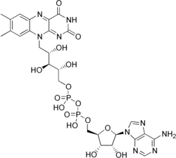 La flavine adénine dinucléotide (FAD) est un groupement prosthétique de nombreuses enzymes, notamment la ferrédoxine-NADP+ réductase, la monoamine oxydase, la D-acide aminé oxydase, la glucose oxydase, la xanthine oxydase et l'acyl-CoA déshydrogénase.
