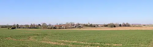 L'occupation des sols de la commune, telle qu'elle ressort de la base de données européenne d'occupation biophysique des sols Corine Land Cover (CLC), est marquée par l'importance des territoires agricoles (95,1 % en 2018), en diminution par rapport à 1990 (100 %). La répartition détaillée en 2018 est la suivante : terres arables (95,1 %), zones urbanisées (4,9 %)[13]. L'évolution de l'occupation des sols de la commune et de ses infrastructures peut être observée sur les différentes représentations cartographiques du territoire : la carte de Cassini (XVIIIe siècle), la carte d'état-major (1820-1866) et les cartes ou photos aériennes de l'IGN pour la période actuelle (1950 à aujourd'hui)[Carte 2].