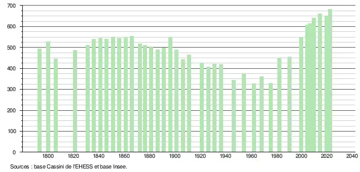 - ↑ Population municipale de référence en vigueur au 1er janvier 2025, millésimée 2022, définie dans les limites territoriales en vigueur au 1er janvier 2024, date de référence statistique : 1er janvier 2022.