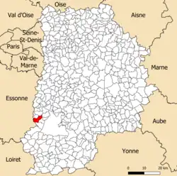 Elle se situe à 14,99 km par la route[Note 1] de Melun[3], préfecture du département et à 15,37 km de Fontainebleau[4], sous-préfecture. La commune fait en outre partie du bassin de vie de Paris[2].