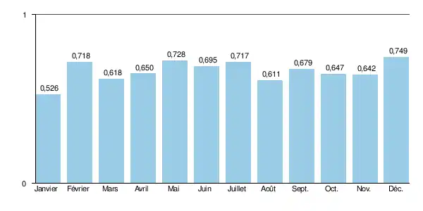 | Débit moyen | 0,669 m3/s (Capelard) moyenne annuelle de 2011 |