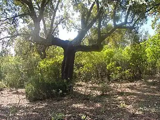 Les plantes caractéristiques sont : Pinus halepensis, Erica arborea, Arbutus unedo, Pistacia lentiscus, Myrtus communis, Clematis cirrhosa, Asparagus acutifolius, Phlomis viscosa, Scilla autumnalis et Scilla peruviana, Narcissus tazetta, Iris palaestina, Colchicum stevenii, Arisarum vulgare, Quercus coccifera, Quercus ilex, Ceratonia siliqua, Pistacia atlantica, Pistacia terebinthus, Crataegus azarolus, Amygdalus communis, Rhamnus alaternus Nerprun alaterne, Cistus sp., especially Cistus monspeliensis, Cistus laurifolius et Cistus salviifolius, Juniperus phoenicea, Phlomis sp. (Phlomis lychnitis), Helichrysum italicum, Salvia sp.[3], Satureia sp.[4], Poterium sp., Arabis sp., Reseda sp., Aristolochia pallida, A. boetica, A. longa paucinervis, A. fontanesi, A. rotunda, A.pistolochia Aristoloche pistoloche, Lavandula stoechas, Jasminum fruticans, et Brassica sp.
