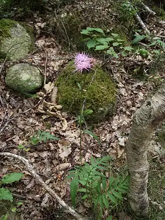 | Serratule des teinturiers | Serratula tinctoria subsp. monticola[N 19]. | Asteracées | Bois, landes | Auvergne, Aubrac, Margeride | >1 100 m | ![]() | |