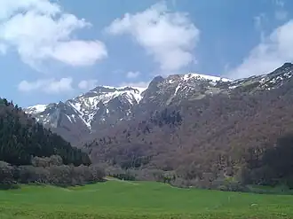 - ↑ Pâturages caractérisés par l'association Diantho sylvatici-Meum athamantici (Œillet des bois, Fenouil des Alpes) dont les phytosociologues distinguent 2 variantes : une semi-héliophile à Euphorbia hyberna (espèce relictuelle de la hêtraie) et une autre plus hygrophile à Serratula tinctoria. Source : Pelouses acidiclines montagnardes du Massif central, Natura 2000
