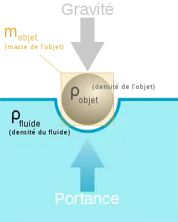Dans un fluide (gaz ou liquide), les corps sont soumis à la poussée d'Archimède. Les corps ont une flottabilité différente selon leur masse volumique et donc leur densité.