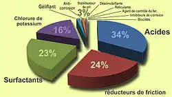 | Agents réducteurs de friction | Polyacrylamide, Huiles minérales | 0,088 %[30] |