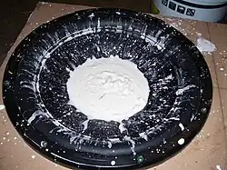 Un exemple peu coûteux et non toxique d'un fluide non newtonien est une suspension d'amidon (par exemple, fécule de maïs) dans de l'eau, parfois appelée oobleck, ooze ou magic mud, obtenue typiquement avec un volume d'eau pour un et demi à deux volumes d'amidon de maïs[7],[8],[9]. Le nom oobleck est dérivé du titre du livre du Dr Seuss, Bartholomée et l'oobleck (en).