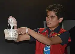 | Viscosité non newtonienne | Épaississement par cisaillement (en) (dilatant) | La viscosité apparente augmente avec une contrainte accrue [2]. | Suspensions d'amidon de maïs dans l'eau (oobleck) |