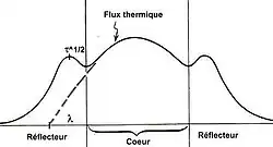 - ↑ La distance d'extrapolation notée λ est la distance depuis la frontière du cœur où la fonction décrivant le flux dans le réacteur prend la valeur zéro. On la désigne également par « économie de réflecteur » car elle représente l'« économie de combustible » que procure la présence du réflecteur