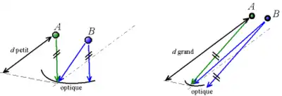 Lorsqu'un système optique observe des objets qui sont proches, les rayons lumineux provenant d'un objet ne sont pas tous parallèles, et des rayons parallèles ne proviennent pas nécessairement d'objets qui sont dans la même direction (par rapport à l'axe optique).
