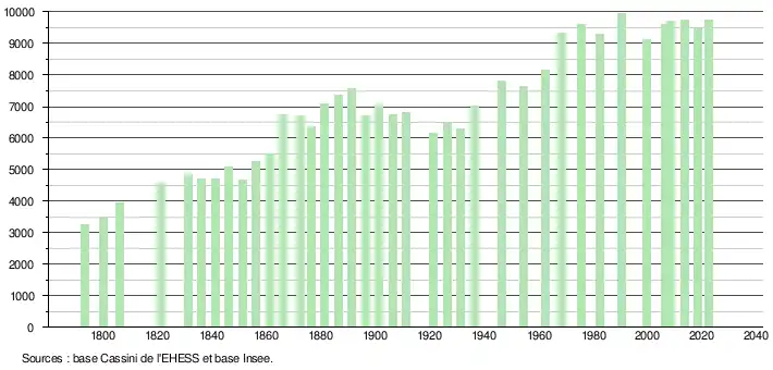 - ↑ Fiches Insee - Populations de référence de la commune pour les années 2006, 2007, 2008, 2009, 2010, 2011, 2012, 2013, 2014, 2015, 2016, 2017, 2018, 2019, 2020, 2021 et 2022.