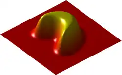 Un exemple simple de fonction C∞ à support compact à n variables est obtenu en prenant le produit de n copies de la fonction à une variable ci-dessus :