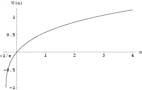Si nous nous limitons aux arguments réels x ≥ −1e, il existe une fonction et une seule W0 à valeurs réelles telle que