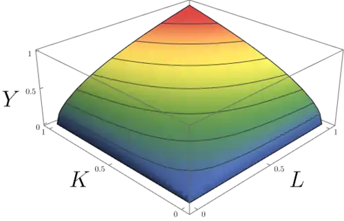 - fonction de type Cobb-Douglas typique dans le cadre de la théorie du producteur.