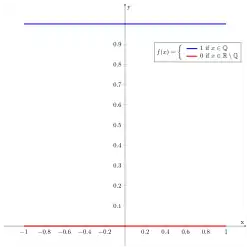 - où k et j sont des entiers. Cela montre que la fonction Dirichlet est une fonction de Baire de classe 2. Il ne peut pas s'agir d'une fonction de Baire de classe 1, car une telle fonction ne peut être discontinue que sur un ensemble maigre[2].