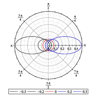 La fonction de phase que l'on souhaite représenter possède la symétrie azimutale: elle est donc fonction du seul angle de colatitude θ ou de son cosinus. La fonction s'exprime sous la forme suivante[2],[3]