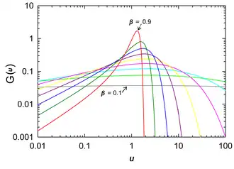 Lorsque β tend vers 1, G(u) tend vers la distribution de Dirac concentrée au point 1, correspondant à une simple exponentielle.