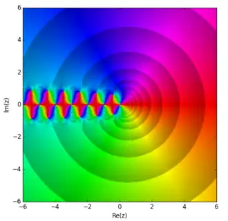 la fonction ψ 1 n'a pas de zéro sur l'axe réel , mais il existe une infinité de paires de zéros zn , zn de partie réelle strictement négative . Les parties réelles