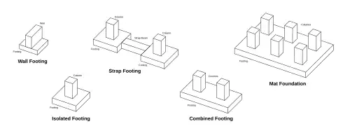 Il existe plusieurs types de fondations superficielles[1]. Les deux plus courantes sont :