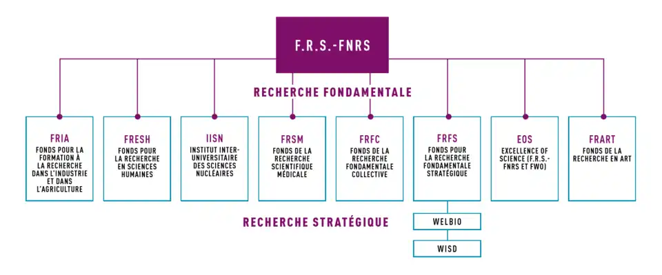 Sous la tutelle du F.R.S.-FNRS, 8 Fonds associés ont été créés afin de financer des recherches stratégiques, soit des recherches fondamentales dans des secteurs scientifiques bien précis. Leur structure et leur fonctionnement ont été conçus de manière telle qu’ils forment, ensemble, un tout cohérent. Cette cohérence est garantie par l’existence d’une administration unique sur laquelle s’appuie l’action des différents Fonds. Les procédures d’introduction et de sélection des demandes sont identiques.
