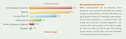 Les bénéficiaires des projets du FSE sont très variés : travailleurs individuels, groupes de personnes, secteurs industriels, syndicats, administrations publiques ou entreprises individuelles. Les groupes de population vulnérables, qui ont des difficultés particulières à trouver un emploi ou se maintenir dans l'emploi (par exemple les demandeurs d'emploi de longue durée), font partie des publics cibles prioritaires de ces projets. À titre indicatif, on[Qui ?] estime que plus de 9 millions de personnes issues de ces groupes vulnérables bénéficient tous les ans d’une aide liée à leur participation à des projets du FSE (voir tableau 1).