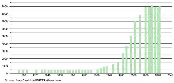 L'évolution du nombre d'habitants est connue à travers les recensements de la population effectués dans la commune depuis 1793. Pour les communes de moins de 10 000 habitants, une enquête de recensement portant sur toute la population est réalisée tous les cinq ans, les populations de référence des années intermédiaires étant quant à elles estimées par interpolation ou extrapolation[16]. Pour la commune, le premier recensement exhaustif entrant dans le cadre du nouveau dispositif a été réalisé en 2005[17].