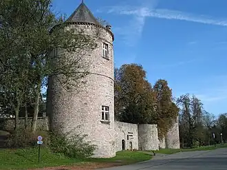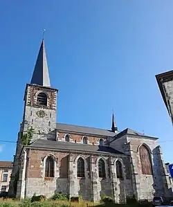 Église Saint-Christophe. Construite en brique au XVIIIesiècle et profondément restaurée et modifiée en façade en 1872 par Eugène Carpentier et aussi en 1954 par Simon Brigode. Suite à des dégradations, l'église a été fermée au culte et les offices sont célébrés à la chapelle du château[11]. L'église, classée, est en réfection avec le soutien de la Région wallonne.
