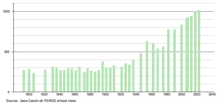 - ↑ Population municipale de référence en vigueur au 1er janvier 2025, millésimée 2022, définie dans les limites territoriales en vigueur au 1er janvier 2024, date de référence statistique : 1er janvier 2022.