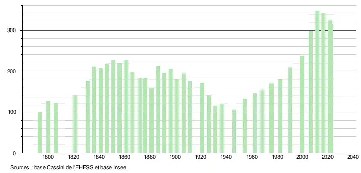315 hab. (2022 en évolution de −7,62 % par rapport à 2016)