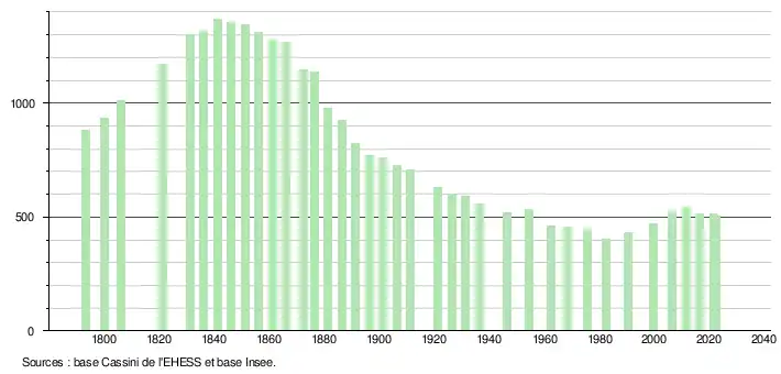 - ↑ Fiches Insee - Populations de référence de la commune pour les années 2006, 2007, 2008, 2009, 2010, 2011, 2012, 2013, 2014, 2015, 2016, 2017, 2018, 2019, 2020, 2021 et 2022.