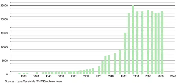 - ↑ Fiches Insee - Populations de référence de la commune pour les années 2006, 2007, 2008, 2009, 2010, 2011, 2012, 2013, 2014, 2015, 2016, 2017, 2018, 2019, 2020, 2021 et 2022.