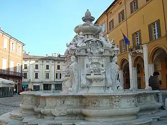 Symbole de Cesena, ce bel exemple d’architecture sculptée est réalisé en pierre d’Istrie, érigée selon trois gradins au-dessus du niveau de la Piazza del Popolo ; chacun des gradins est orné d’une paire d’écussons contenant chacun une figure héraldique : celle côté nord appartient au pape Sixte V surmontée de l’emblème de la cité ; les autres sont dédiées au cardinal Guido Ferreri, au vice légat Antonio Maria Galli et du cardinal Domenico Pinelli.