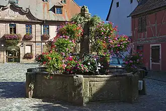 - ↑ « Fontaine de Bergheim », notice no PA00085342, sur la plateforme ouverte du patrimoine, base Mérimée, ministère français de la Culture
