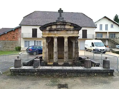 - ↑ « Fontaine publique », notice no PA00102039, sur la plateforme ouverte du patrimoine, base Mérimée, ministère français de la Culture.