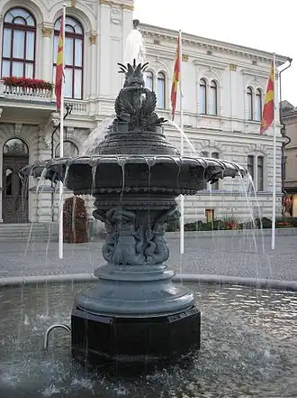 La fontaine conçue par Robert Huber et offerte à la ville par Wilhelm von Nottbeck est érigée devant la Mairie de Tampere.