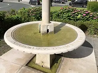 Le monument est constitué par un pavement en grandes dalles carrées et composé d'un long banc et d'une petite fontaine. La fontaine présente sur un socle évasé une vasque circulaire d'où surgit une colonnette.