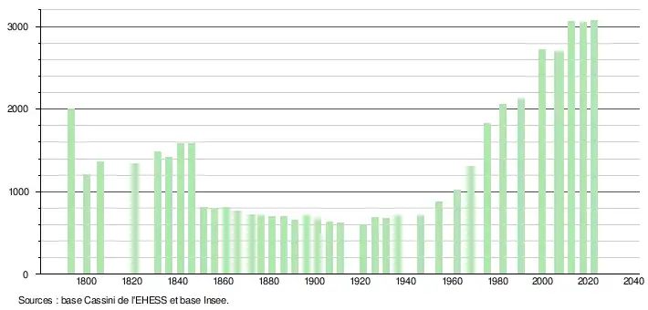 En 2022, la commune comptait 3 070 habitants[Note 5], en stagnation par rapport à 2016 (Rhône : +3,93 %, France hors Mayotte : +2,11 %).